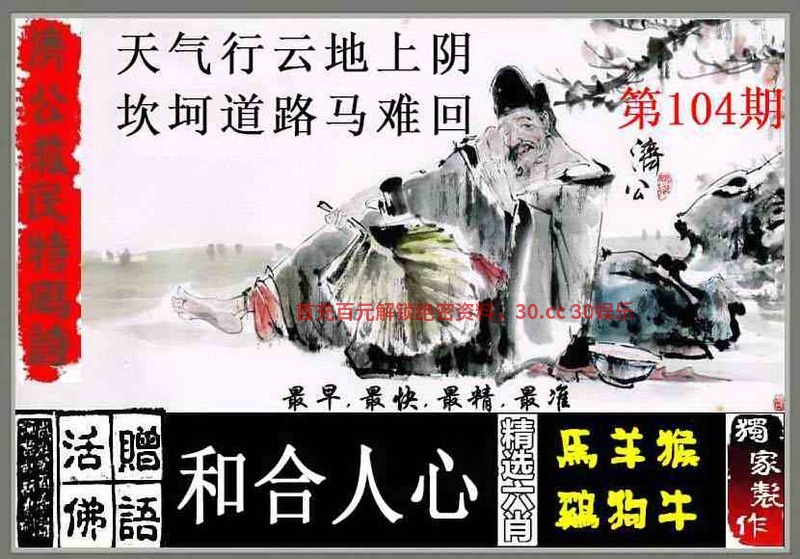 104期:济公特码诗:天气行云地上阴,坎坷道路马难回(开:狗32)