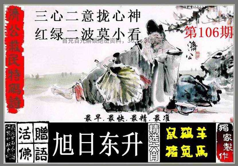 106期:济公特码诗:三心二意拢心神,红绿二波莫小看(开:猪43)