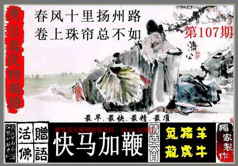 107期:济公特码诗:春风十里扬州路,卷上珠帘总不如(开:鸡33)